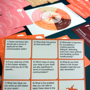 The game can be used individually, in groups, teams or organizations to find effective approaches to challenging situations. In this game, you can win learning points (not countable points), new ideas and inspiration. If you choose to share at the end of the game, it can also enhance psychological safety and social cohesion.