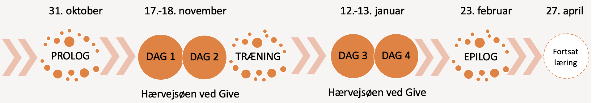 Vi tager udgangspunkt i din ambition i ledelse og kommer omkring 5 dimensioner: Være. Tænke. Relatere. Samarbejde. Handle. Du kommer til at lede stærkt og bære dygtigt i alle 5!